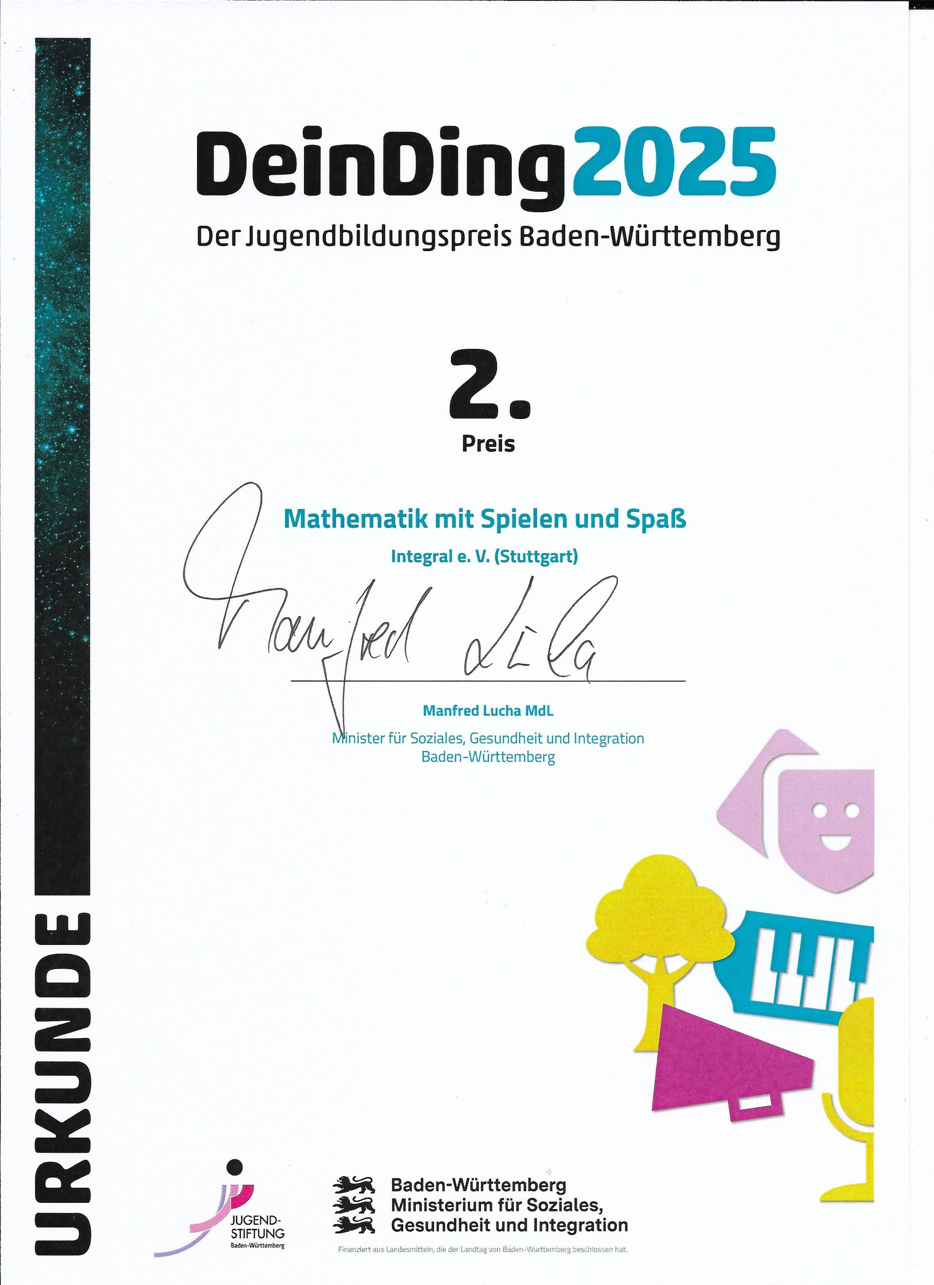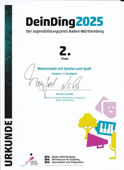 Unser Projekt "Mathematik mit Spielen und Spaß" erhielt den 2. Preis des Jugendbildungspreises Baden-Württemberg 2025.
